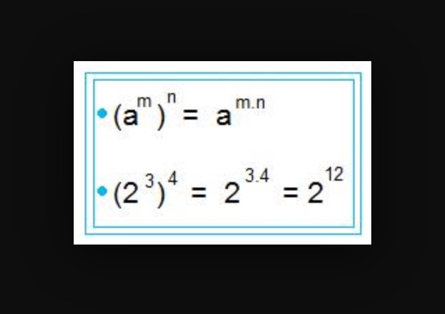 Quando elevamos uma determinada potência à outra potência. Para resolvê-la, podemos conservar a base e multiplicar os expoentes. Ou seja potência de potência= manter a base e multiplicar os expoentes.